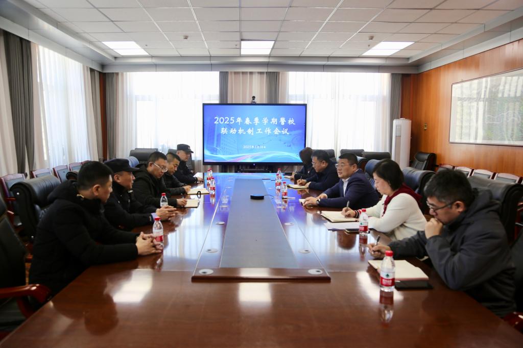 新学期开始,为进一步加强校园安全稳定工作,2025年3月14日,学校在崇德楼八楼会议室召开警校联动机制工作会议。哈尔滨市公安局政保支队高校大队教导员辛维东带队来到我校,我校党委副书记王春雷,党委委员、宣传统战部部长于晓阳出席会议,保卫处、网络信息中心相关领导参加会议。