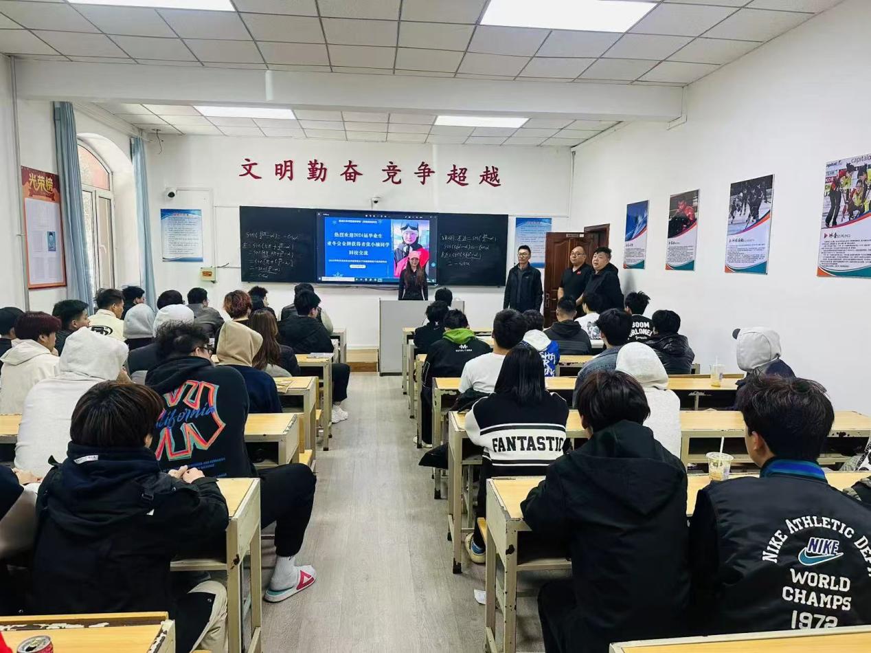2025年4月22日,第九届亚冬会单板坡面障碍技巧金牌得主、黑龙江省滑雪运动学校(附属竞技体校)2024届毕业生张小楠,从北京国家队返回母校探望。她向校领导汇报近期成绩与未来规划,还走进课堂与学弟学妹们亲切交流。