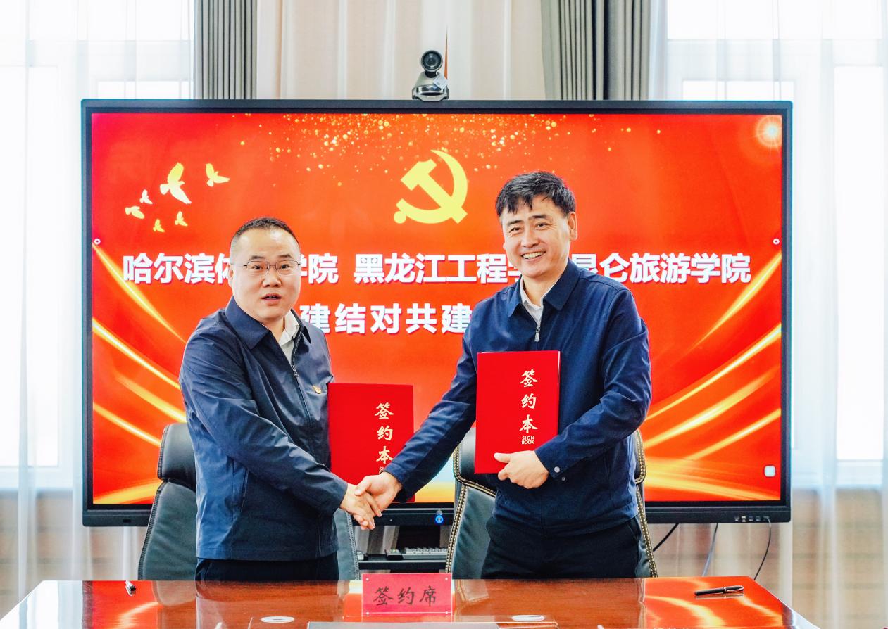 为深入贯彻落实党中央关于加强高校党的建设重要部署和省委教育工委关于公办高校与民办高校党建结对共建的工作要求,5月27日上午,我校与黑龙江工程学院昆仑旅游学院党建结对共建签约仪式在崇德楼八楼会议室举行。我校党委书记兰景力,党委副书记、校长姜玉洪,党委副书记王春雷,党委委员、副校长兼组织部部长王广贵;黑龙江工程学院昆仑旅游学院党委书记刘金伟,党委副书记、副校长武录齐,党委委员、组织部部长刘张,党委委员、宣传统战部部长郭林燕及两校相关基层党组织负责人参加了签约仪式,会议由王春雷主持。