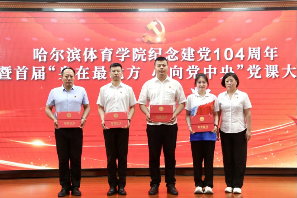 为庆祝中国共产党成立104周年,持续提升党员干部履职能力和党员教育质效,7月1日上午,哈尔滨体育学院庆祝建党104周年暨首届“身在最北方 心向党中央”党课大赛决赛在崇德楼学术报告厅举行。校领导班子成员、“光荣在党50年”纪念章获得者代表出席本次活动;全校科级以上党员领导干部、各二级党组织书记、副书记、党支部委员及党员代表参加活动。