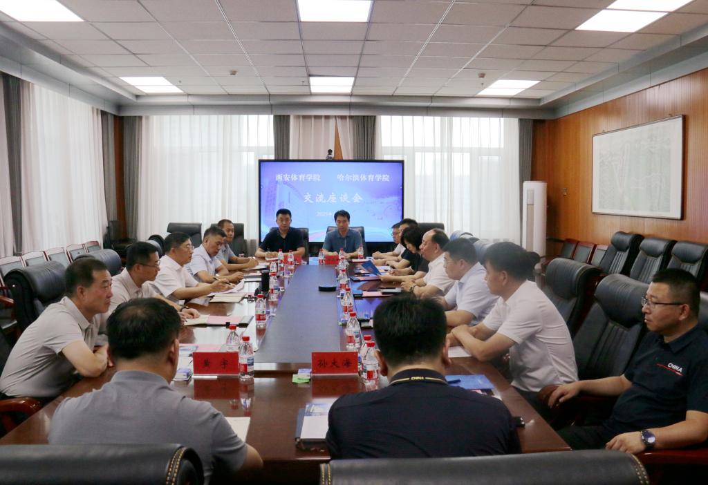 7月25日,西安体育学院党委书记刘子实一行来校调研,共同研讨“十五五”谋划、学科专业布局、冰雪专业建设、场馆建设及运营等方面工作。校党委书记姜玉洪、党委副书记王春雷、党委副书记贾妮燕、副校长王广贵、副校长曹连众出席座谈会。