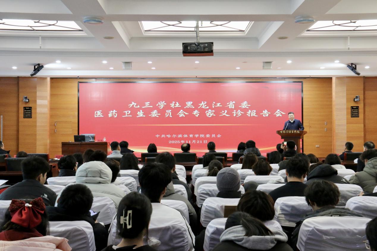 11月21日下午,九三学社黑龙江省委专职副主委朱智带队,社会服务部一级调研员杨越、参政议政部三级调研员徐文涵,哈医大四院副院长、九三学社医卫委主委于雷,哈医大四院松北肾内科主任、九三医卫委委员崔蕊及哈医大四院多学科专家团队莅临我校,以调研座谈、专题讲座、义诊服务“三位一体”开展健康送校园活动,扎实推进体医融合落地见效。校党委书记、校长姜玉洪,党委委员、宣传统战部部长张显峰,党政办公室主任那德福,黑龙江省滑雪运动学校党总支书记张大业出席活动。