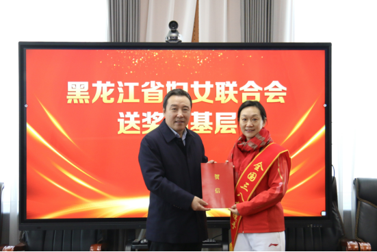 “三八”国际妇女节之际,3月5日上午,省妇联“送奖到基层”活动走进哈尔滨体育学院,省妇联副主席刘畅、省教育厅二级巡视员车成全一行,为我校冰壶专业教师周妍颁发全国三八红旗手荣誉证书及奖章。学校党委副书记、工会主席贾妮燕,副校长曹连众参加颁奖活动。