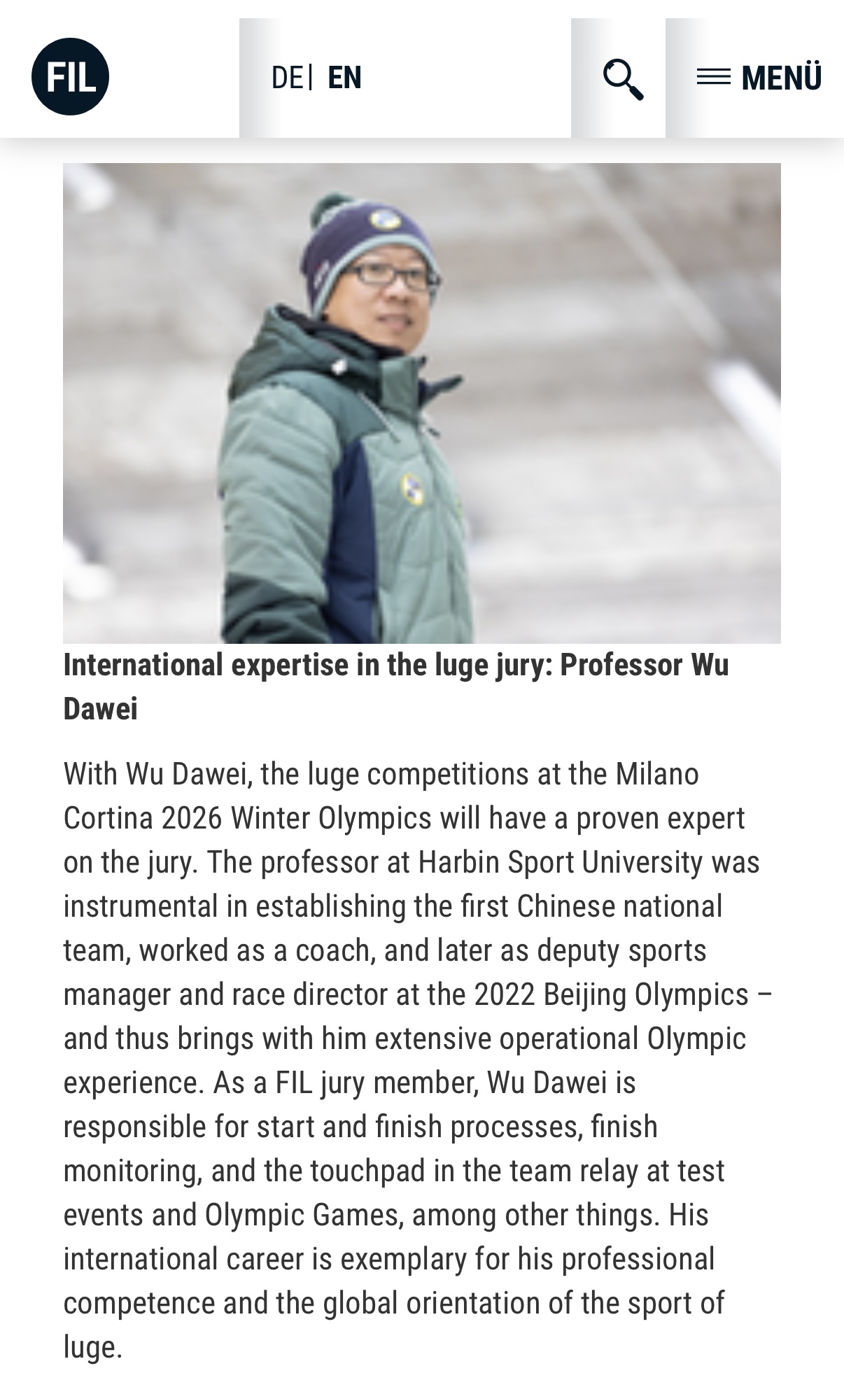 【国际雪橇联合会(FIL)】雪橇仲裁国际专家:武大伟教授
