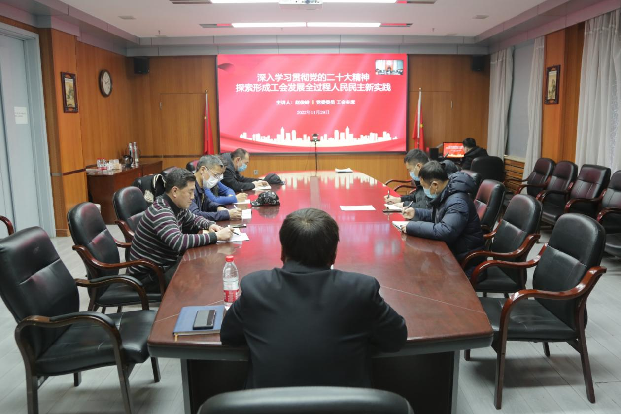 11月29日上午,党委委员、工会主席赵俊岭以《深入学习贯彻党的二十大精神 探索形成工会发展全过程人民民主新实践》为题,开展党的二十大精神宣讲活动。