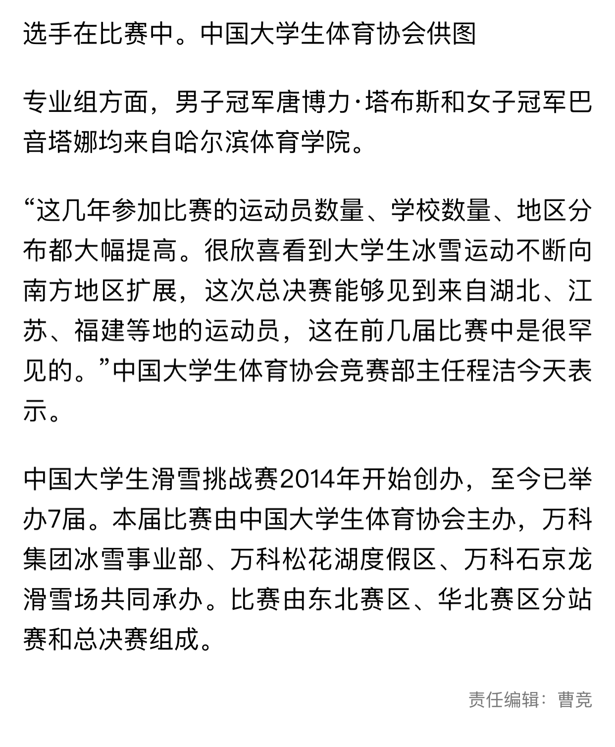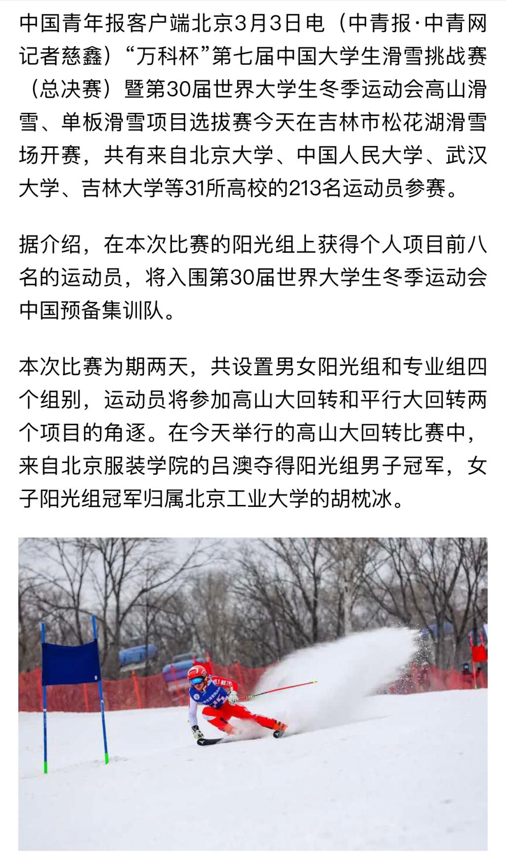 第七届中国大学生滑雪挑战赛(总决赛)在吉林开赛