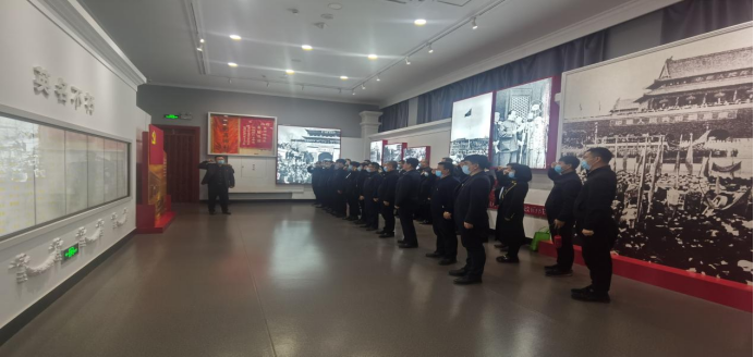 穿行在各个展厅之间,观看墙壁上一幅幅珍贵的历史照片,聆听了革命烈士们的英勇感人事迹,深刻感悟到中国革命前行道路上先烈们不可磨灭的坚强意志与牺牲精神,仿佛使时间回溯到了那个浴血奋战、前赴后继的时代,党员干部们深受其感染与震撼,致以深切哀思,献上崇高敬意。