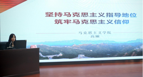高丽同志以“坚持马克思主义指导地位不动摇筑牢马克思主义信仰”为题讲授专题党课。党课立足马克思主义中国化时代化的实践,从马克思与马克思主义、马克思主义行与中国化时代化的马克思主义行和继续高扬马克思主义伟大旗帜等三个方面系统解答了“两个行”的深刻内涵,引导大家明晰“中国化时代化”是马克思主义在新时代的呈现形式,明确习近平新时代中国特色社会主义思想是中国化时代化的马克思主义,是马克思主义中国化时代化的最新理论成果,明确“两个结合”和“六个坚持”是我们党不断推进马克思主义中国化时代化的历史奥秘,是永葆“中国化时代化的马克思主义行”的内在规定和重要基础。高丽同志在党课中提到,我们必须坚持对马克思主义的坚定信仰、对中国特色社会主义的坚定信念,必须做马克思主义坚定的维护者和忠实的践行者,凝聚起推进党和国家各项事业不断向前发展的磅礴力量。
