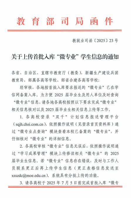 我校“冰雪体育赛事项目管理专员微专业”成功入选教育部首批“双千计划”入库项目,相关信息已完成学信网备案,系学校首个纳入教育部首批入库的微专业。