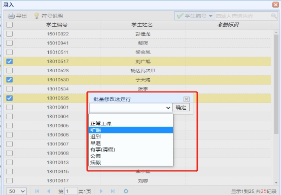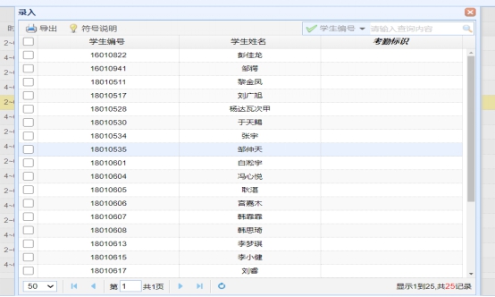 4、在点击录入之后,会呈现上课学生名单,如下图图3。
