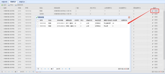 5、在上图中,选定某个学生,点击明细能查到具体不及格课程信息。