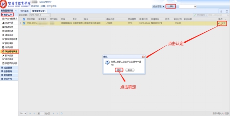 课程负责人电脑登录教务管理系统进行认定, 课程负责人登录系统,点击“个人事务”—“教学工作”—“学生缓考认定”,查到学生之后,点击右边的认定,如下图,然后点击确定。