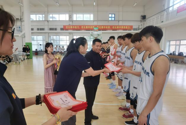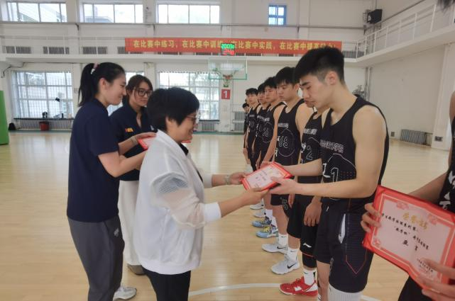 学院全体领导班子成员、各科室主任和部分教师、辅导员观看了甲A组决赛并参加闭幕式。闭幕式上,学院书记那德福和院长董欣分别为获得冠亚军代表队颁奖,副院长房英杰宣读比赛成绩,篮球教研室主任王淼主持闭幕仪式。