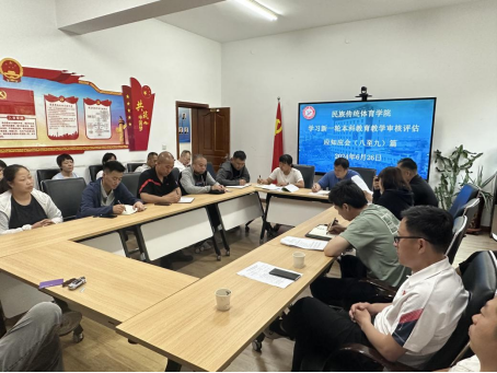 为深入贯彻新一轮本科教育教学审核评估的精神,民族传统体育学院于6月26日组织全体教师开展了(八至九)篇应知应会学习工作会议。此次活动由李世宏副院长主持,旨在加强教师对教育教学评估的理解与掌握。
