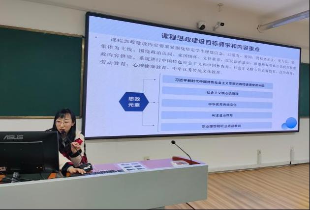 郭旭婷老师精心准备,首先深入介绍了课程思政提出的国内外背景,让老师们对课程思政的起源有了更清晰的认识。接着,她对课程思政的政策文件进行逐一解读,使大家充分领会到政策的导向和要求。最后,郭旭婷老师结合自己参加课程思政比赛的宝贵经验,从说课、讲课以及课程思政建设目标要求和内容重点等方面,毫无保留地分享了自己的心得。她的分享生动具体,为老师们在课程思政教学建设中提供了切实可行的方法和思路。
