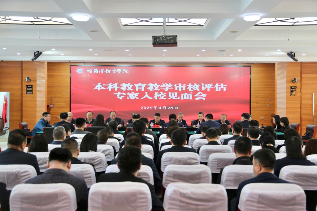 党委书记兰景力代表学校向审核评估专家表示最热烈的欢迎。他强调,本次教育教学审核评估既是对学校立德树人成效和人才培养质量的一次全面检阅,也是帮助学校认真总结办学经验、查摆存在问题、推动整改建设的重要契机,更是学校持续深化改革,有效提升本科教育教学水平和人才培养能力,推动各项事业高质量发展的强大动力,对学校在新时代更好地实现内涵式高质量发展具有特殊的重要意义。他代表学校师生,对专家组前期工作中所展现的严谨细致的工作态度、求真务实的工作作风和高位精湛的业务素养表示感谢和敬佩。他表示,学校将诚恳接受专家组的意见建议,认真学习各位专家的先进理念、宝贵经验和成功做法,进一步明确下一步整改方向,不断增强全校师生员工做好本科教育教学工作的责任感、使命感,为加快实现冰雪体育特色鲜明,国际知名、国内一流的高等体育强校目标,为教育强国、体育强国、健康中国建设和龙江全面振兴发展,做出哈体更好更大的贡献。
